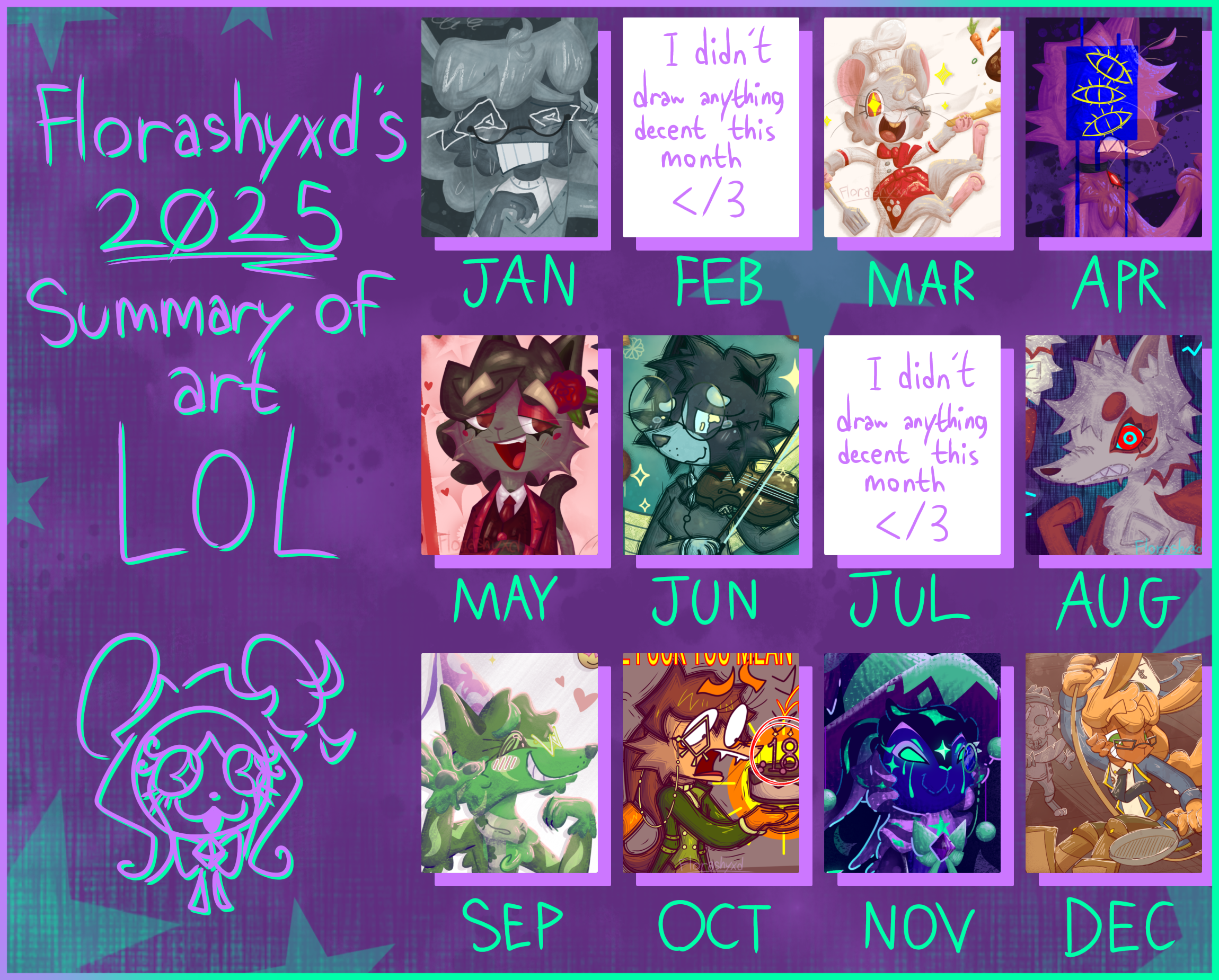 expand_moreHappy first day of 2026. Made a 2025 summary of art, including my personal favorite works of mine of each months.