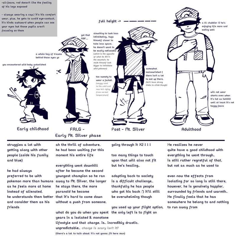 -> Because he spent so long in a dangerous environment, red is very vigilant and cautious, though.. sometimes overly that it's not healthy, it took a while for him to start relaxing a bit more after going back to "normalcy"